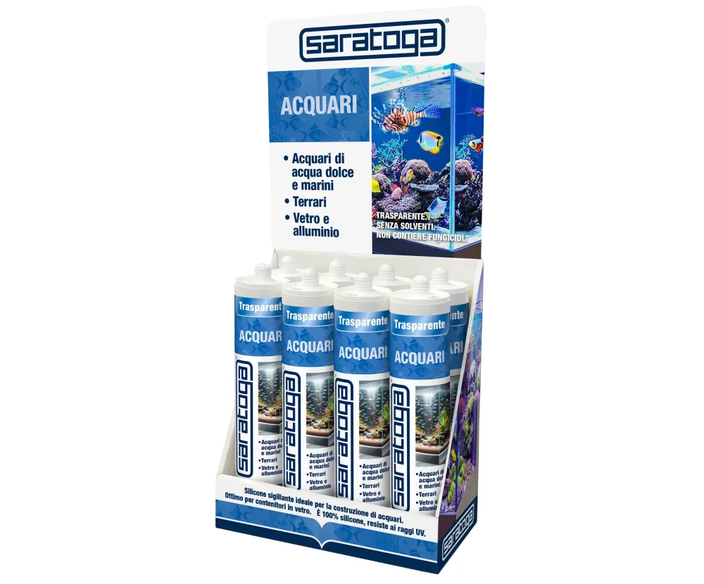 סיליקון אקווריום מקצועי מבית Saratoga המיועד לבניית אקווריומים איכותיים עד 300 ליטר. נוסחה אצטית מתקדמת ללא ממיסים ופטריות המבטיחה בטיחות מלאה לדגים ולחיי מים.
