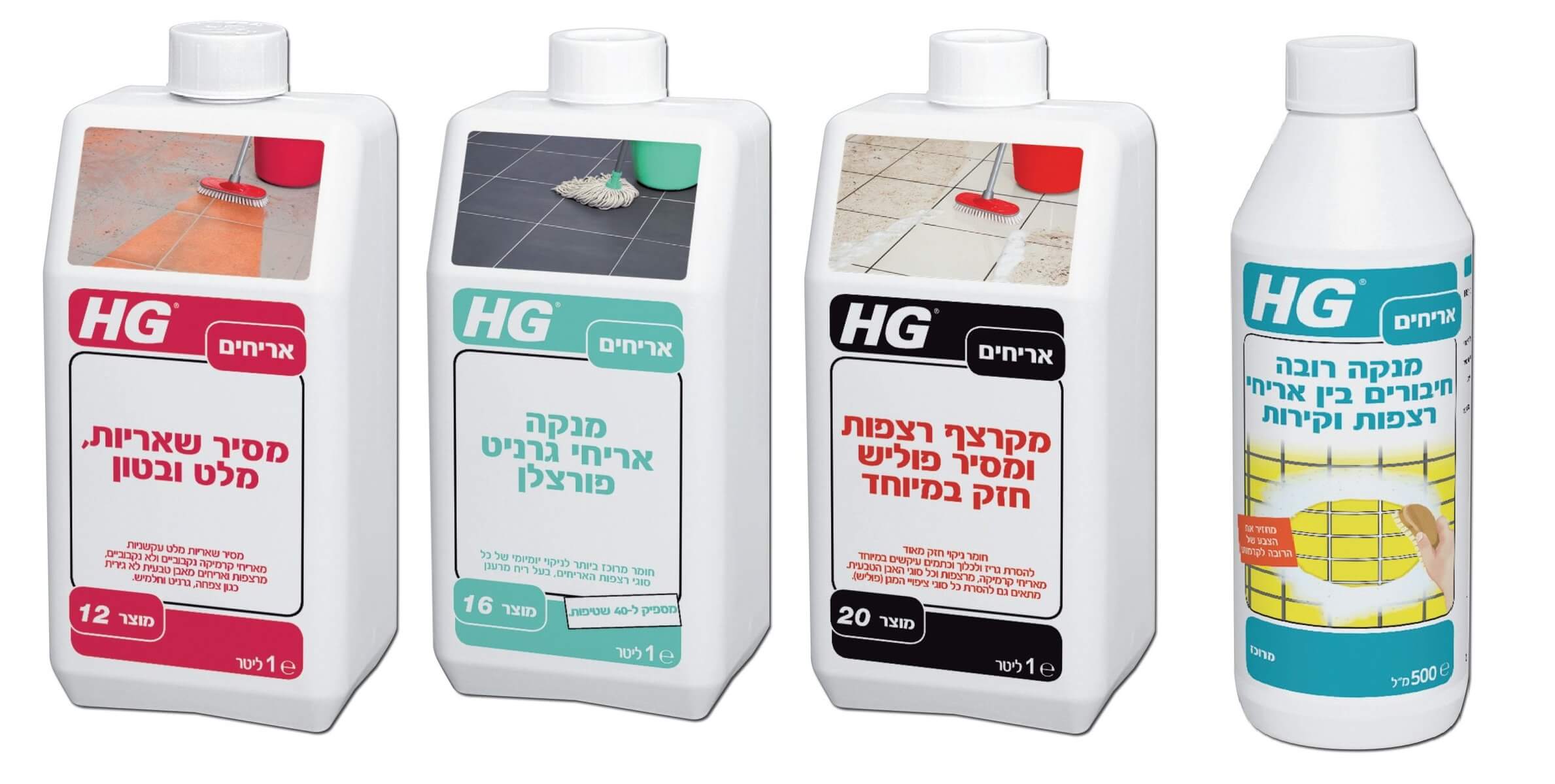 ערכת ניקוי מקצועית לאחר שיפוץ של HG כוללת 4 מוצרים משלימים להתמודדות עם שאריות בנייה, מלט ורובה.