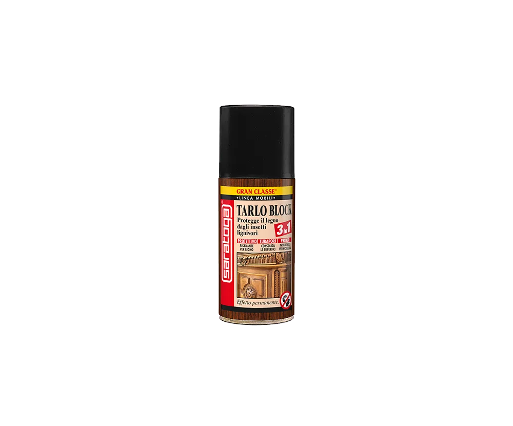 ספריי TARLO BLOCK מבית SARATOGA מציע טכנולוגיה מתקדמת 3 ב-1 להגנה מקיפה על עבודות עץ מפני חרקים תוקפי עץ.